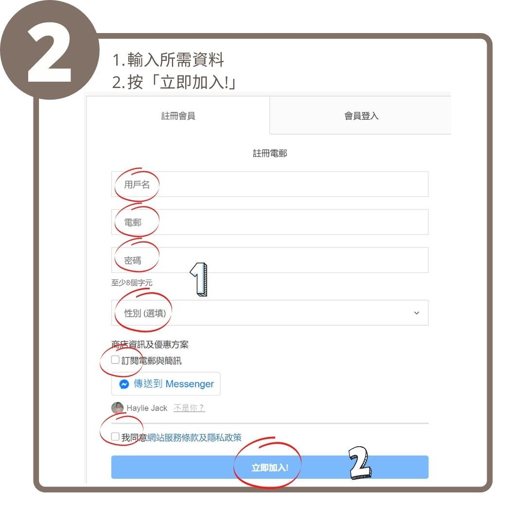 網頁版於首頁點擊右上角的「登入會員」,手機版請點擊右上角的「👤」。選取「註冊會員」及根據頁面指示輸入所需資料,完成後按「立即加入」。