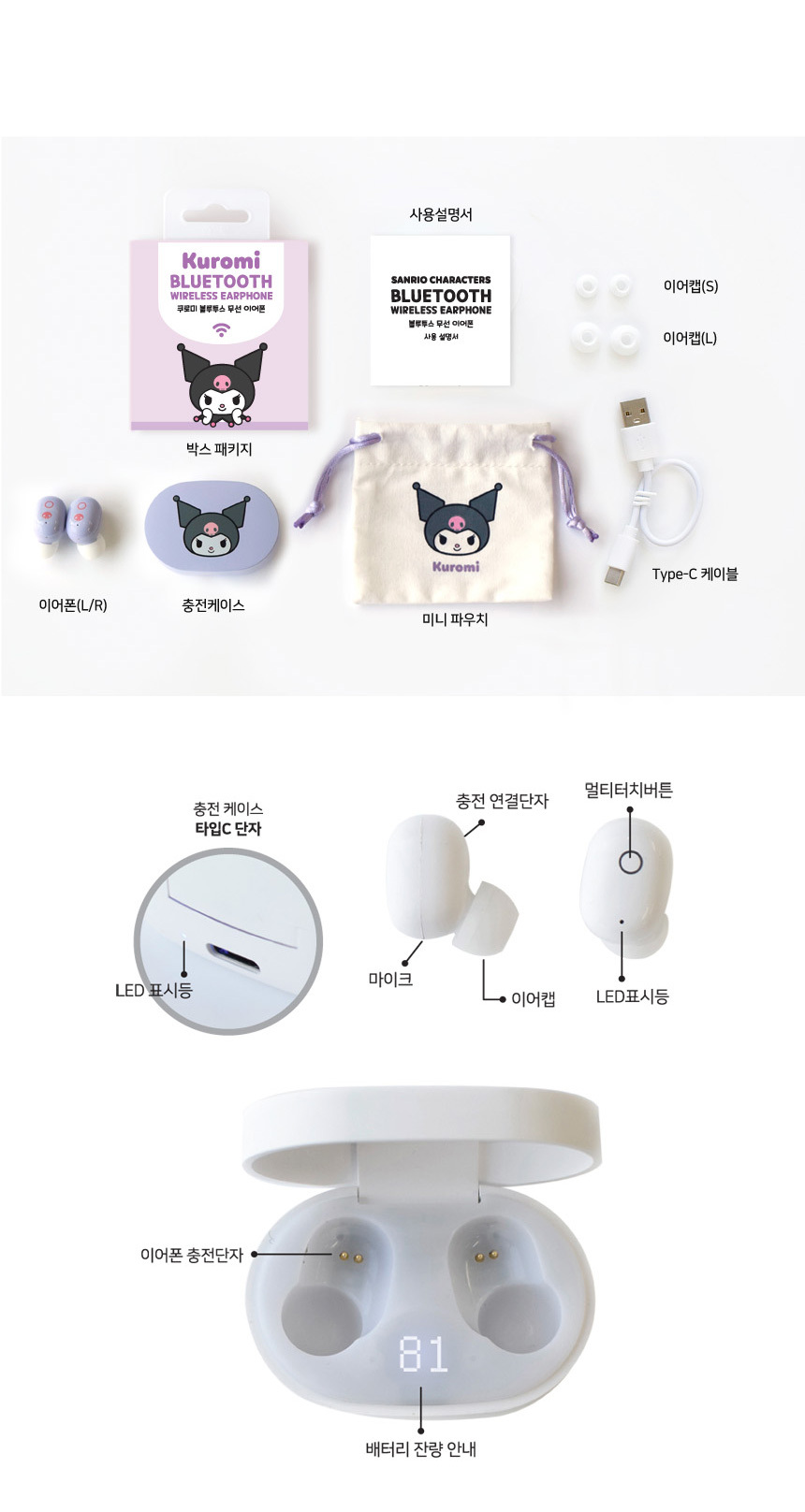• 設計簡潔可愛:兩隻耳機均印有可愛的蝴蝶結圖案,充電盒上的剩餘電量顯示會發出柔和的燈光,既實用又美觀。