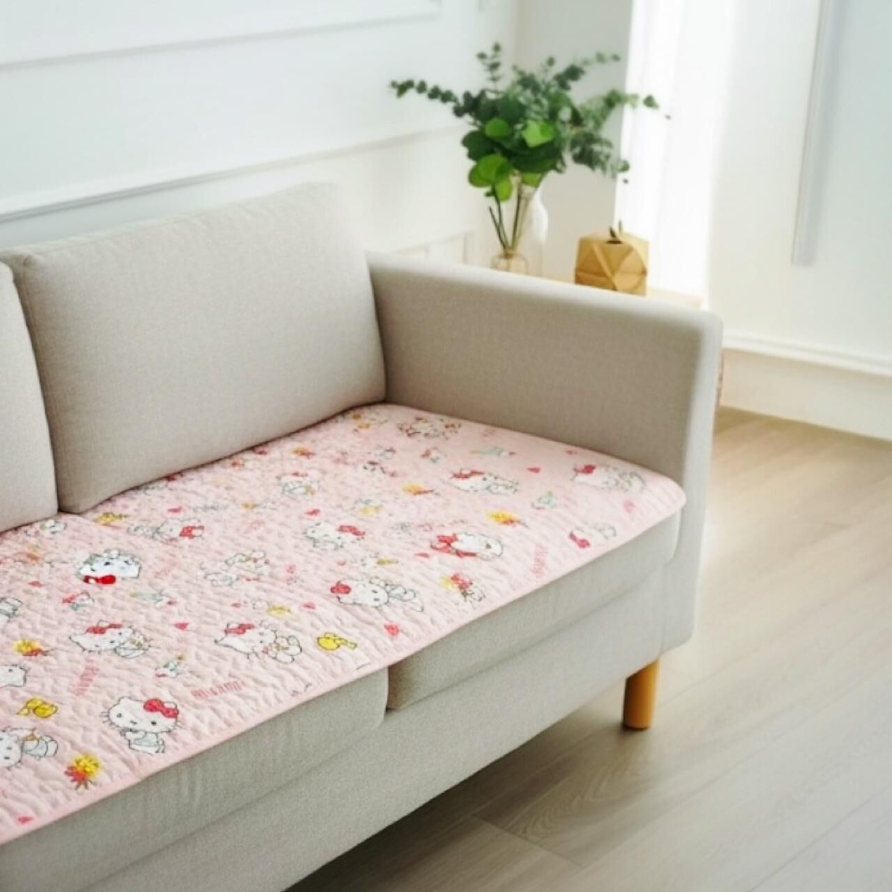 • 屋企梳化坐得耐,一邊仲好靚,但另一邊開始甩皮爛面,真係唔捨得掉!店長就諗到妙計:用 Hello Kitty 梳化墊遮醜~雖然我哋呢款係 2座位size (70 x 120cm),但如果你係大3座梳化,都可以好似我咁,兩張拼埋一齊,效果出奇地好!