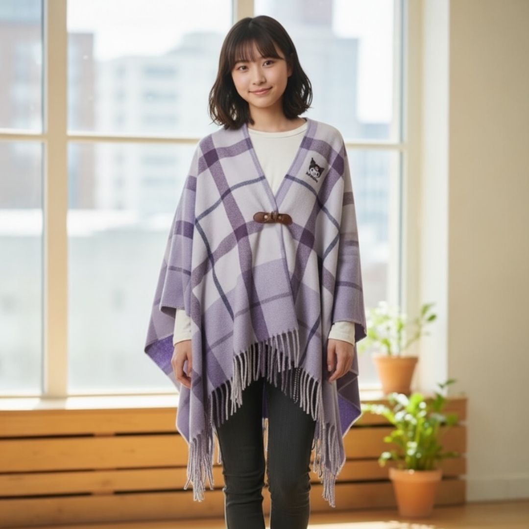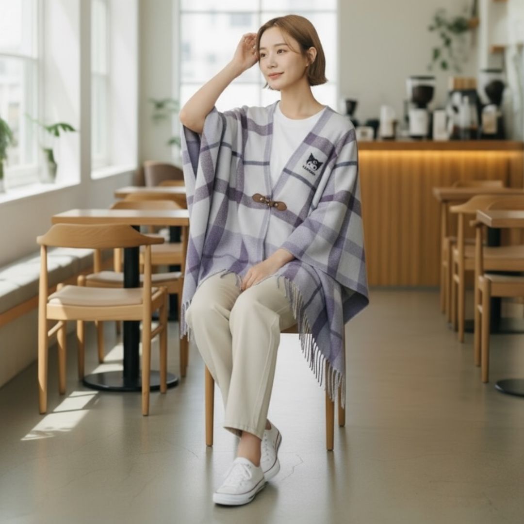 • 這款 Sanrio 格紋大披肩,無論是日常穿搭還是特別場合,都是完美的選擇!3 款可愛的設計,讓你隨時隨地都能展現個性。