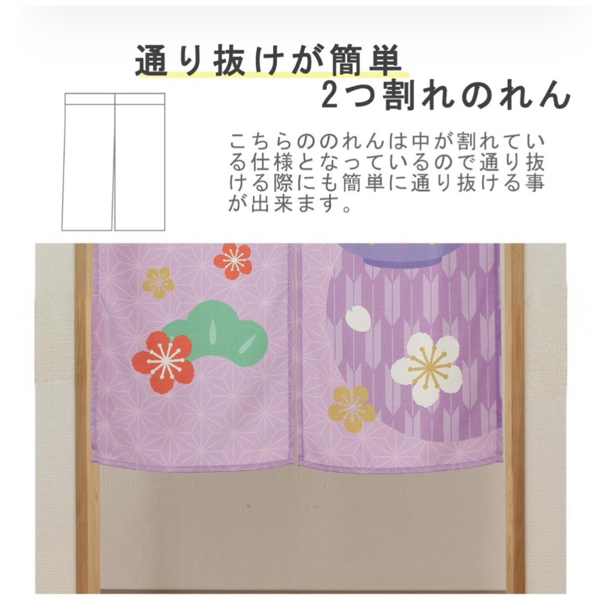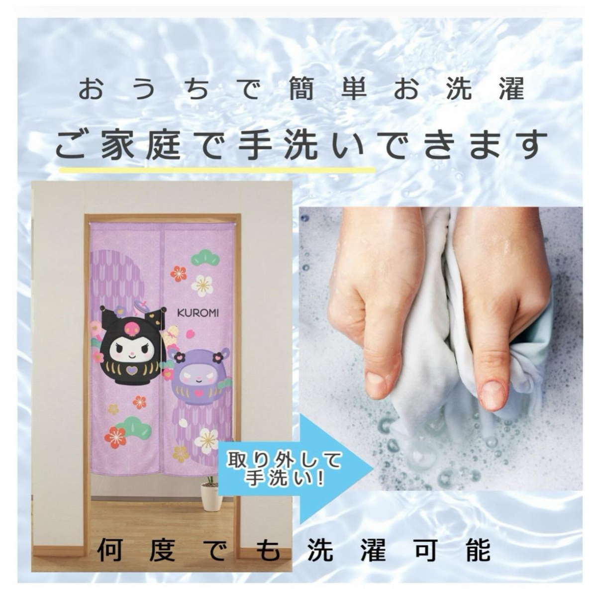 • 和風角色門簾輕輕垂落,圖案裏面有祭典、和服、神社守護犬、櫻花、達摩、富士山,亦有Hello Kitty、Kuromi、Cinnamoroll用佢哋最可愛嘅姿態陪住你。呢種門簾喺日本叫「のれん」,係介乎門同布之間嘅存在,唔需要完全阻隔,但又可以為生活留下一點空氣感