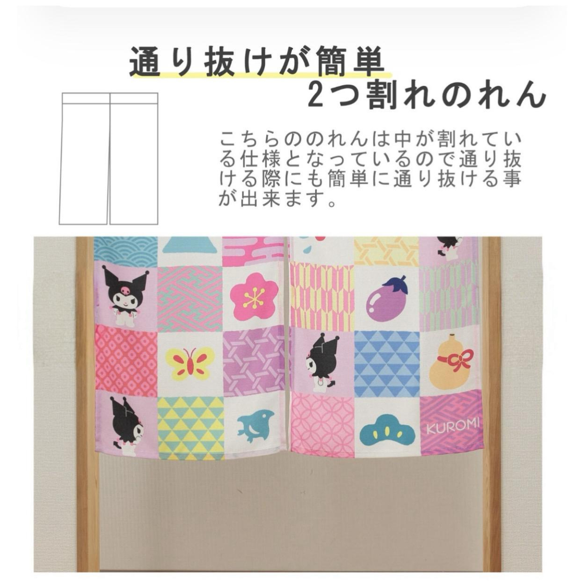 26040-KU Sanrio Kuromi 日本和風長門簾 小紋 #JP-NM26-14668