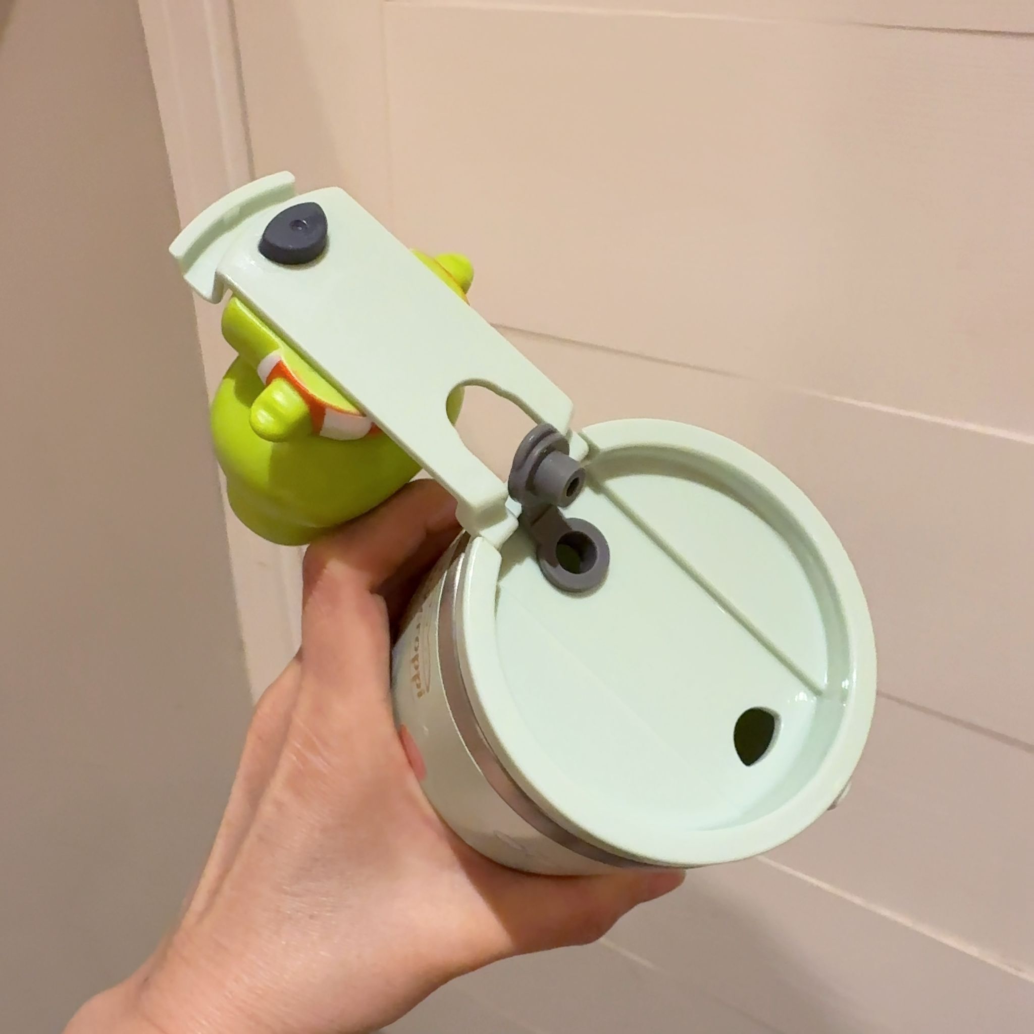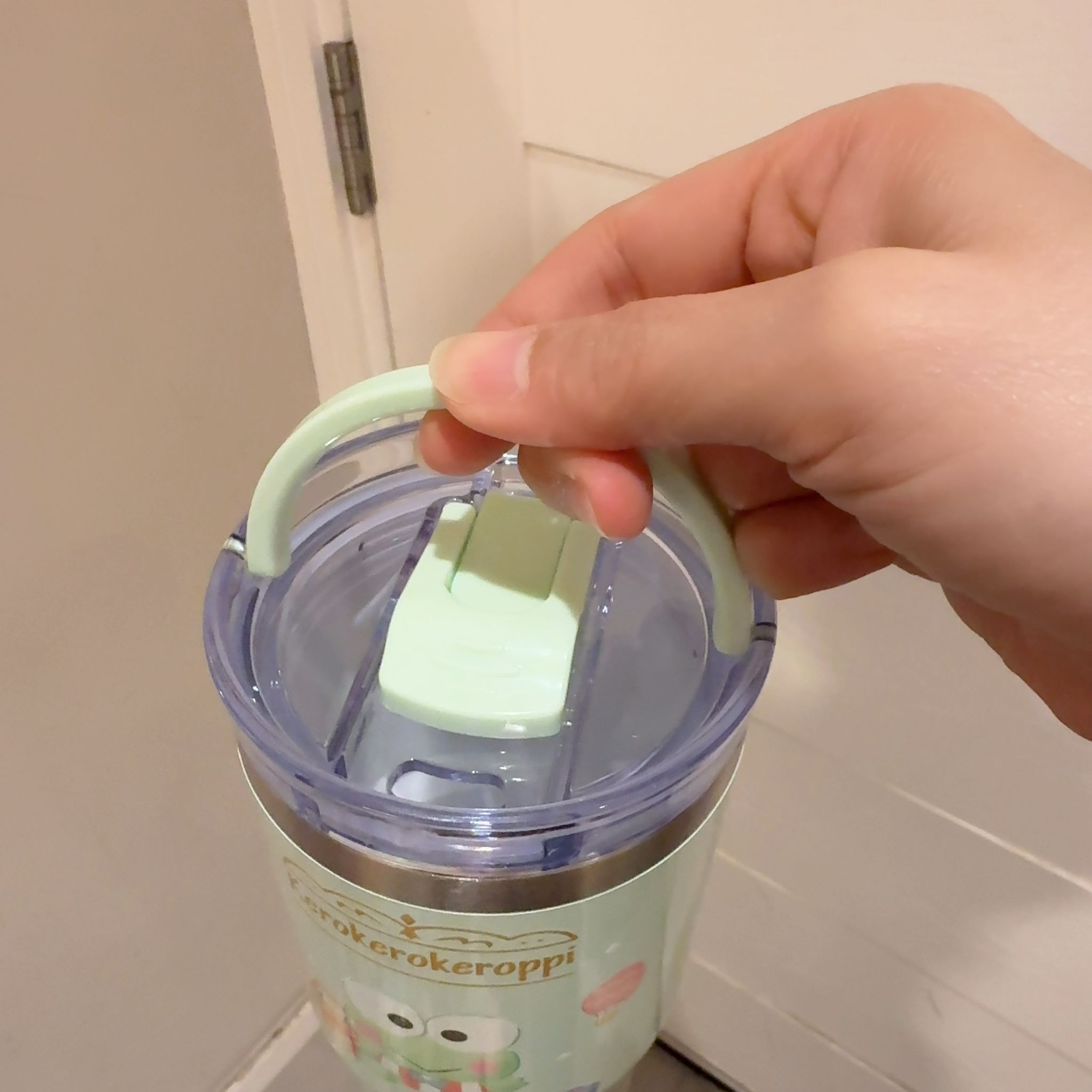• 雙用杯蓋設計:有公仔蓋(超可愛😍)同手提蓋(方便攜帶),仲有直飲口+吸管口,隨心用。