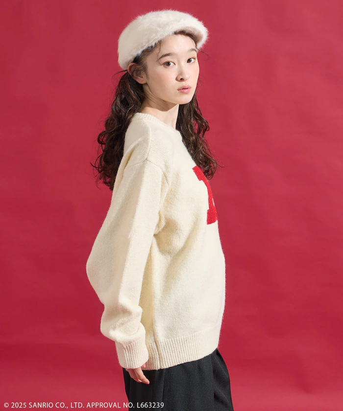 26056-KT Sanrio Hello Kitty x Freak's Store H字立體刺繡冷衫 米白色 #JP-FS26