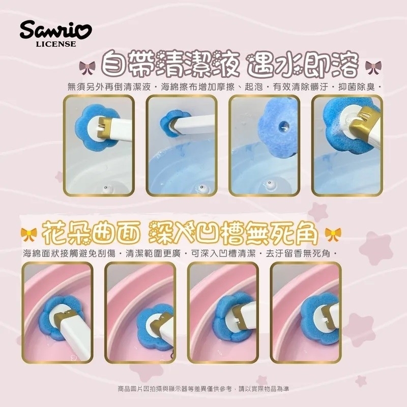 • 花朵曲面海綿:深入馬桶邊角位,凹槽位都刷到,真正無死角