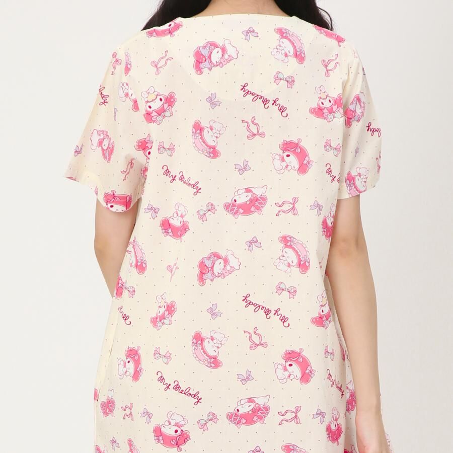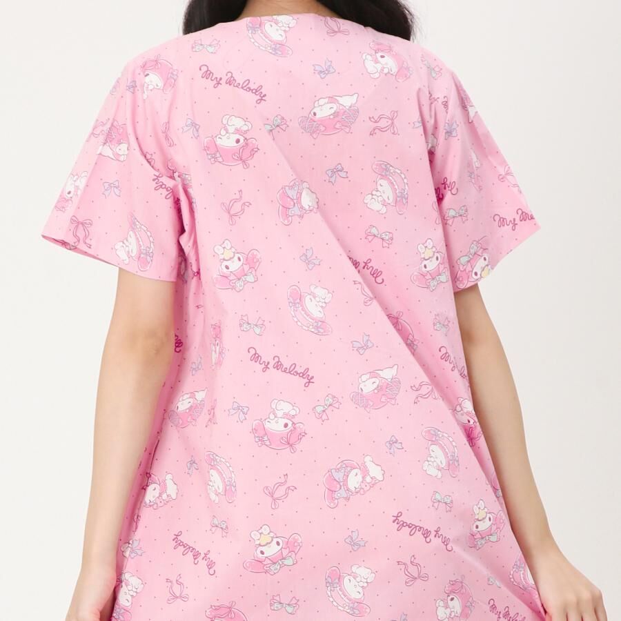 • 呢件 Melody 連身睡衣用咗 100% 純棉平織布料(Broad 布料係一種平紋織法,質地輕薄透氣),著上身清爽舒服,特別適合春夏季。設計係 Melody 滿版印花,仲有兩款顏色揀,無論係屋企休閒、午睡、或者同家人開吹水會,都可以同 Melody 一齊過得開心。