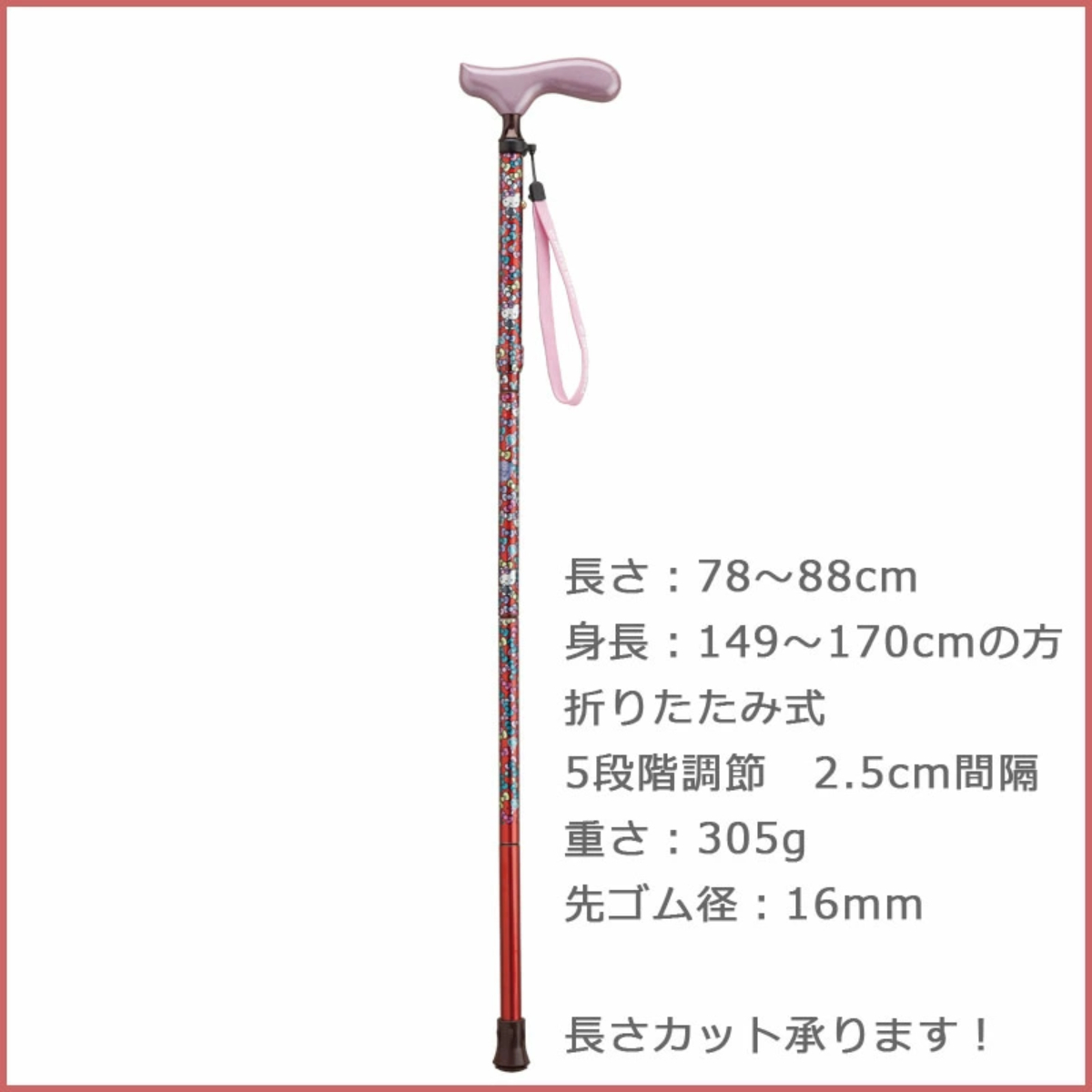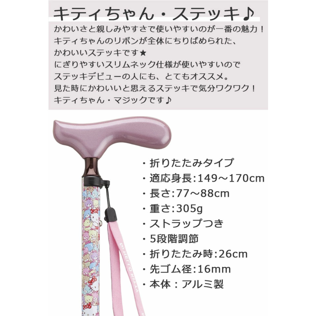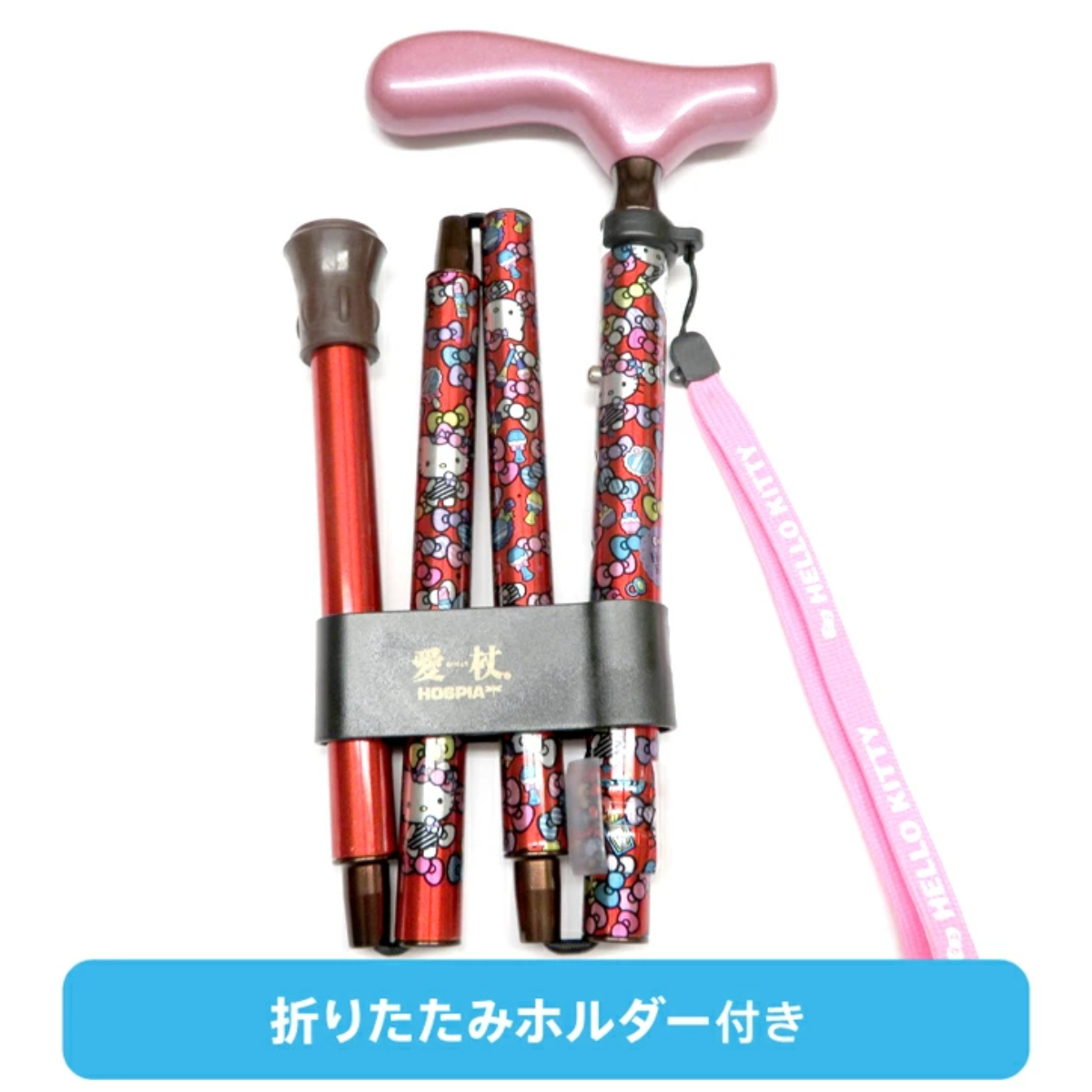 • 超靚圖案::4 款Hello Kitty 柺杖各有特色,粉紅甜美、紅色活力、金色高貴、黑色時尚,無論係行山、旅行定日常散步,都可以揀一款最啱自己風格嘅 Hello Kitty 柺杖。