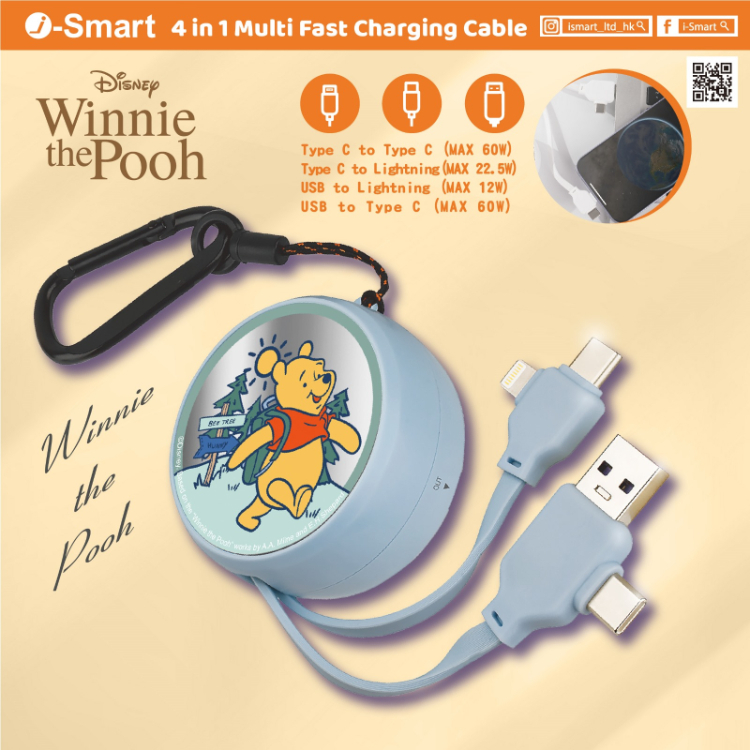 23242-PH 迪士尼 4合1快充伸縮充電線 #IS23-4811027 小熊維尼