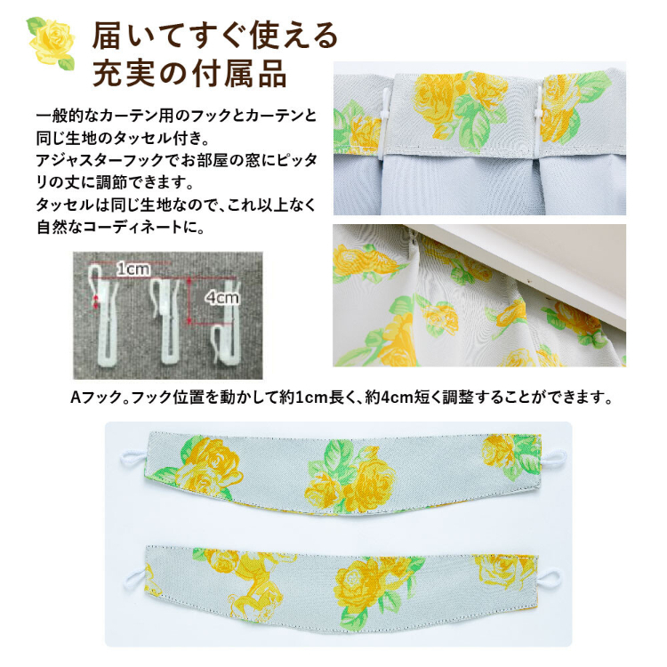 • 附簾帶及掛勾, 當你收到窗簾時, 掛勾已經預早裝上了, 你只需將掛勾扣在窗簾路軌上就用得 (需預先自行安裝路軌)