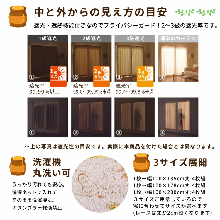 迪士尼經典小熊維尼2-3級遮光窗簾 + 窗紗 (一套4塊) #JP-BD23-SB-656-D/SB-657-D