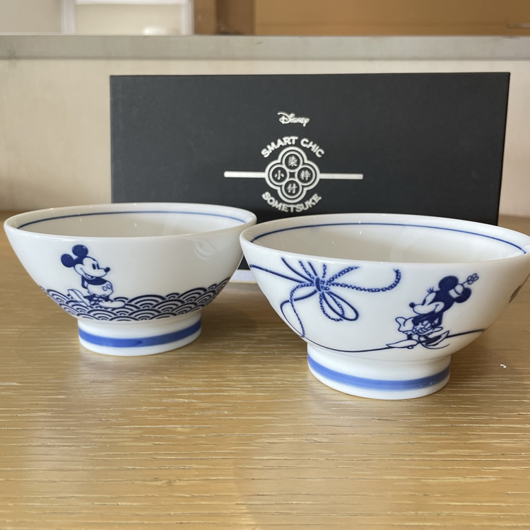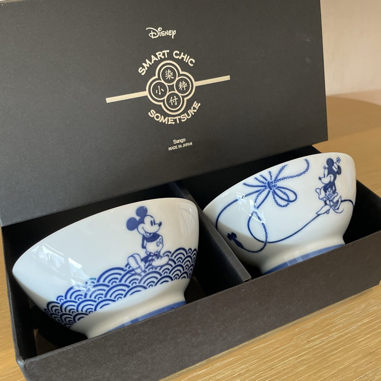 • 沉靜俐落的染付,將米奇米妮融入了日本傳統圖案,是搭配各種料理的完美組合