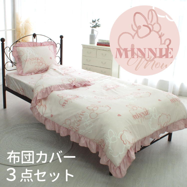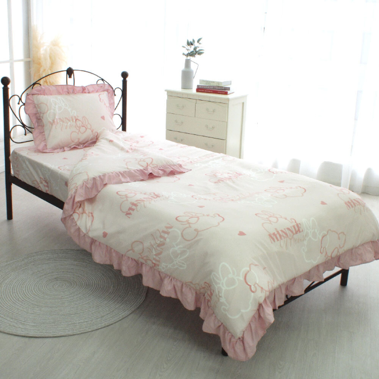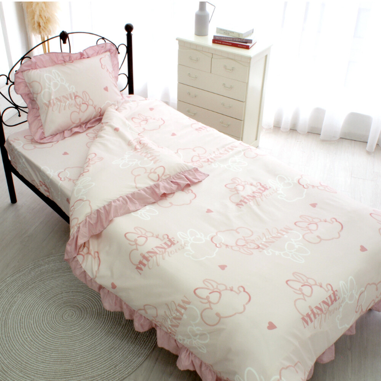 迪士尼米妮老鼠床上用品三件裝單人 附褶邊 #BD22-SB-632-D