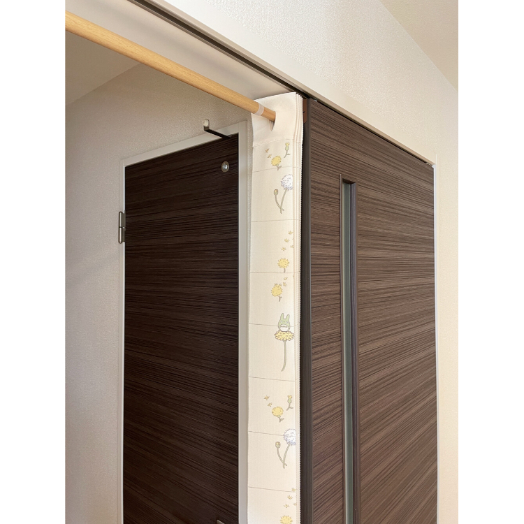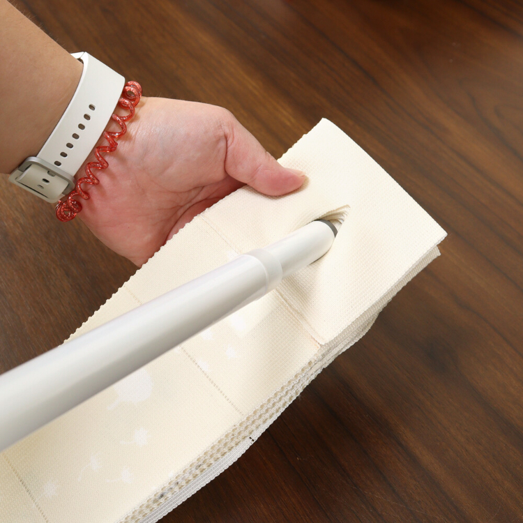 • 安裝簡單只要預先準備好一支伸縮長通,將布簾穿上去就用得,用剪刀沿垂直和水平線切割,輕鬆調整長度