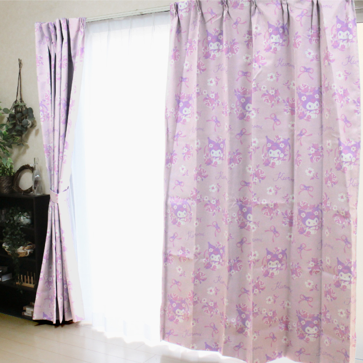 23026-KU [日本製] Sanrio Kuromi 蝴蝶結1級遮光窗簾 (一套2塊) #JP-BD23-SB-591-S