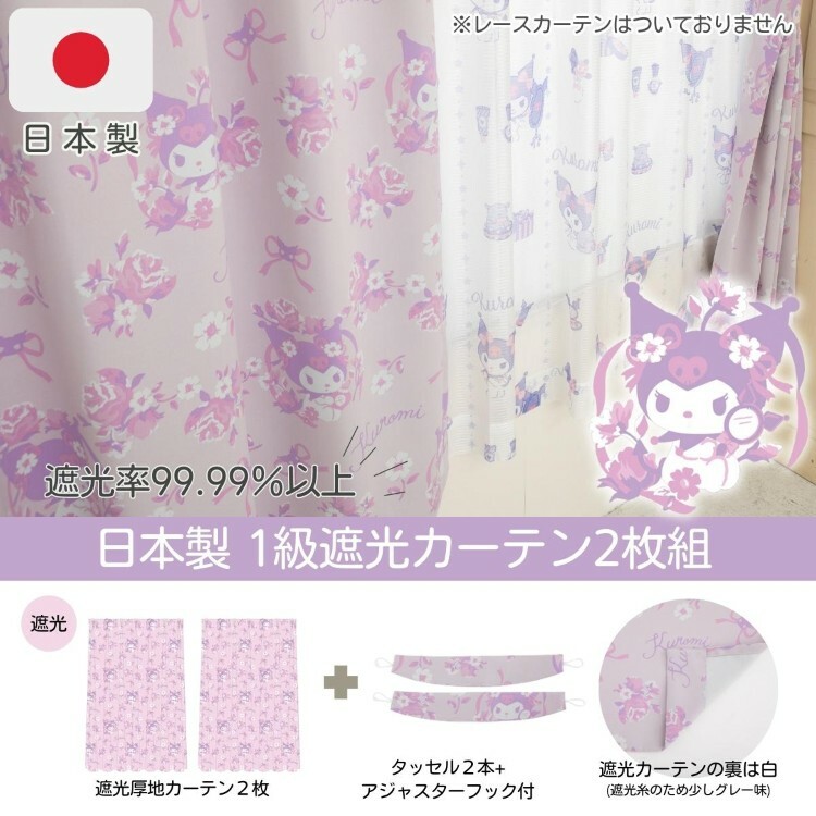 [日本製] Sanrio Kuromi 蝴蝶結1級遮光窗簾 (一套2塊) #JP-BD23-SB-591-S