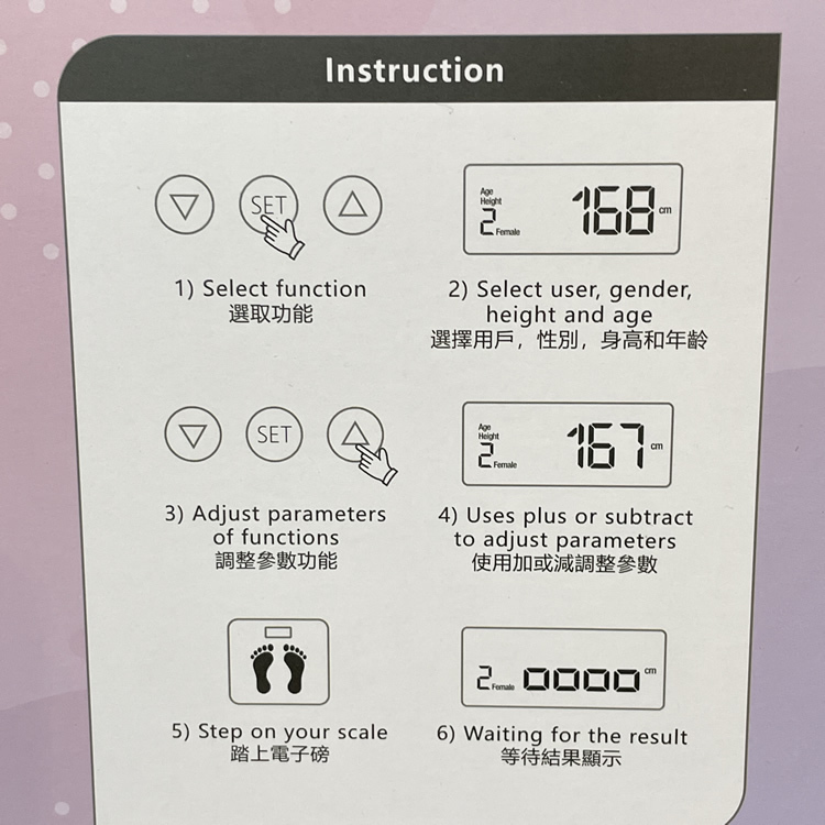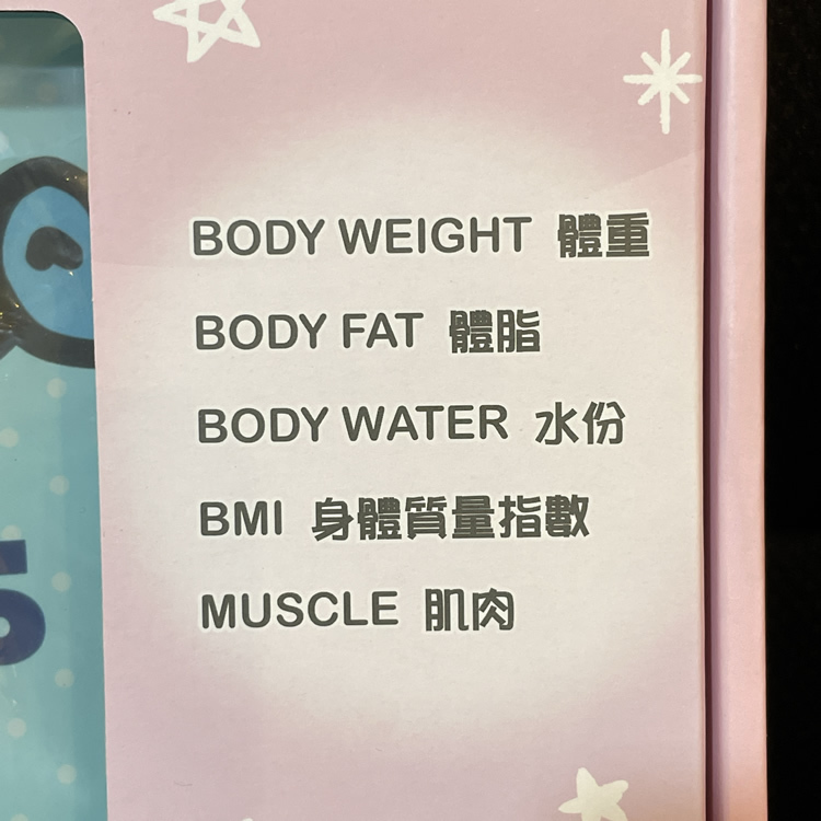 • 12項基本身體資料 (重量,體脂,皮下脂肪,內臟脂肪,無脂肪質量,蛋白質,卡路里,骨骼,肌肉,水份,理想體重,BMI)