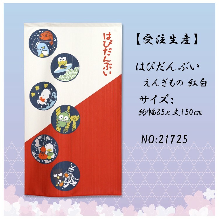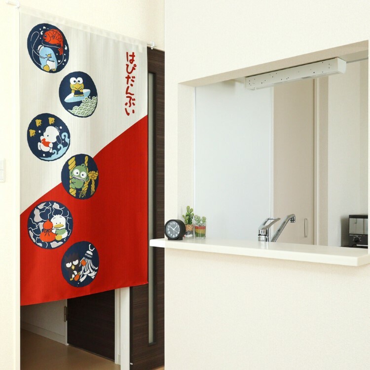 Sanrio Hapidanbui 門簾 85 x 150 cm #CM24-21725 吉祥物 紅白