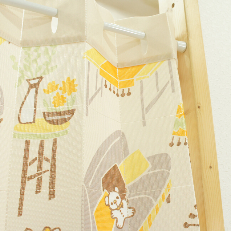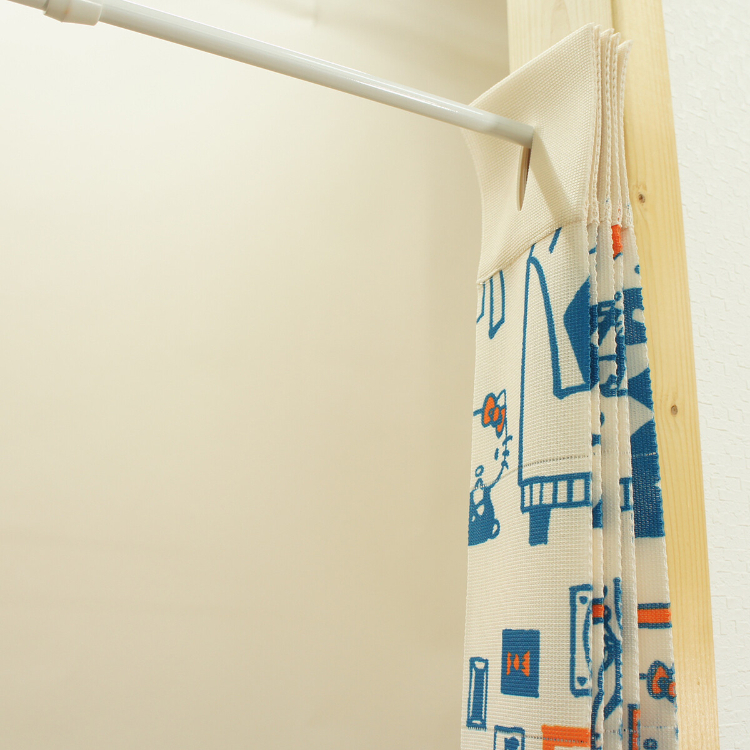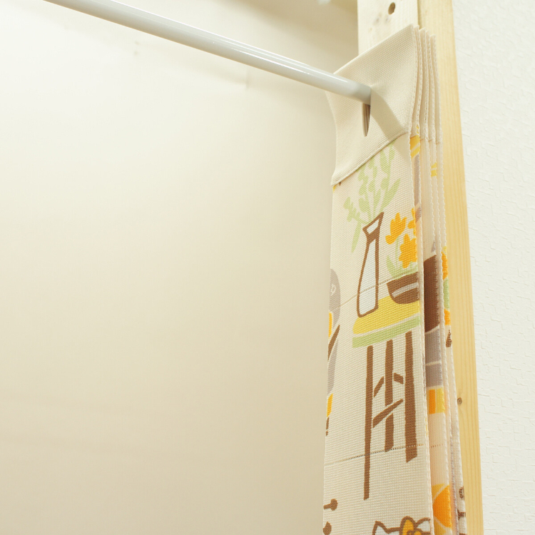 • 安裝簡單只要預先準備好一支伸縮長通,將布簾穿上去就用得,用剪刀沿垂直和水平線切割,輕鬆調整長度