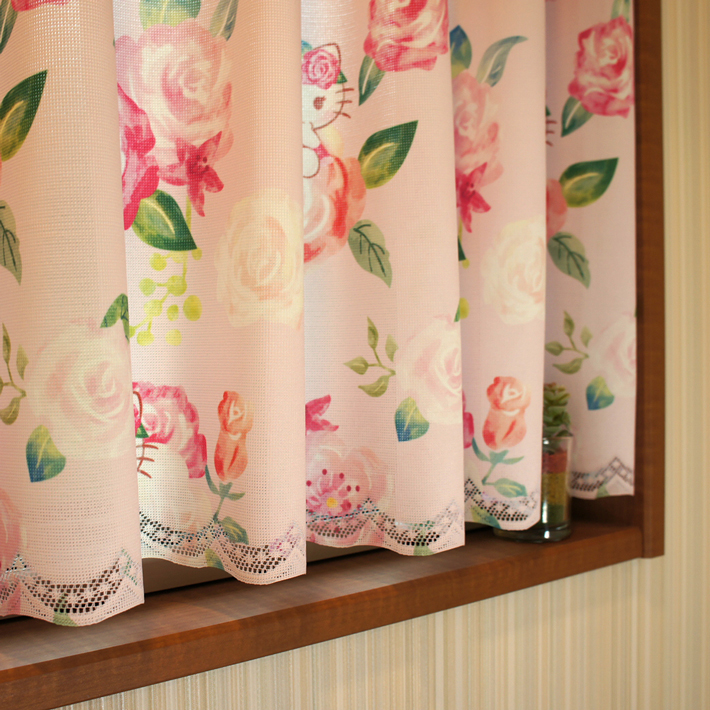 Sanrio Hello Kitty 咖啡廳窗簾 粉紅玫瑰花園