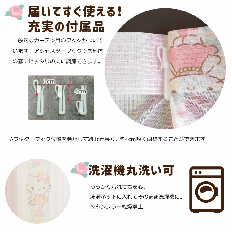 20097-KT Sanrio Hello Kitty 花圖案2級遮光窗簾 + 窗紗 (一套4塊) #JP-BD20-SB-521-S-SB-522-S