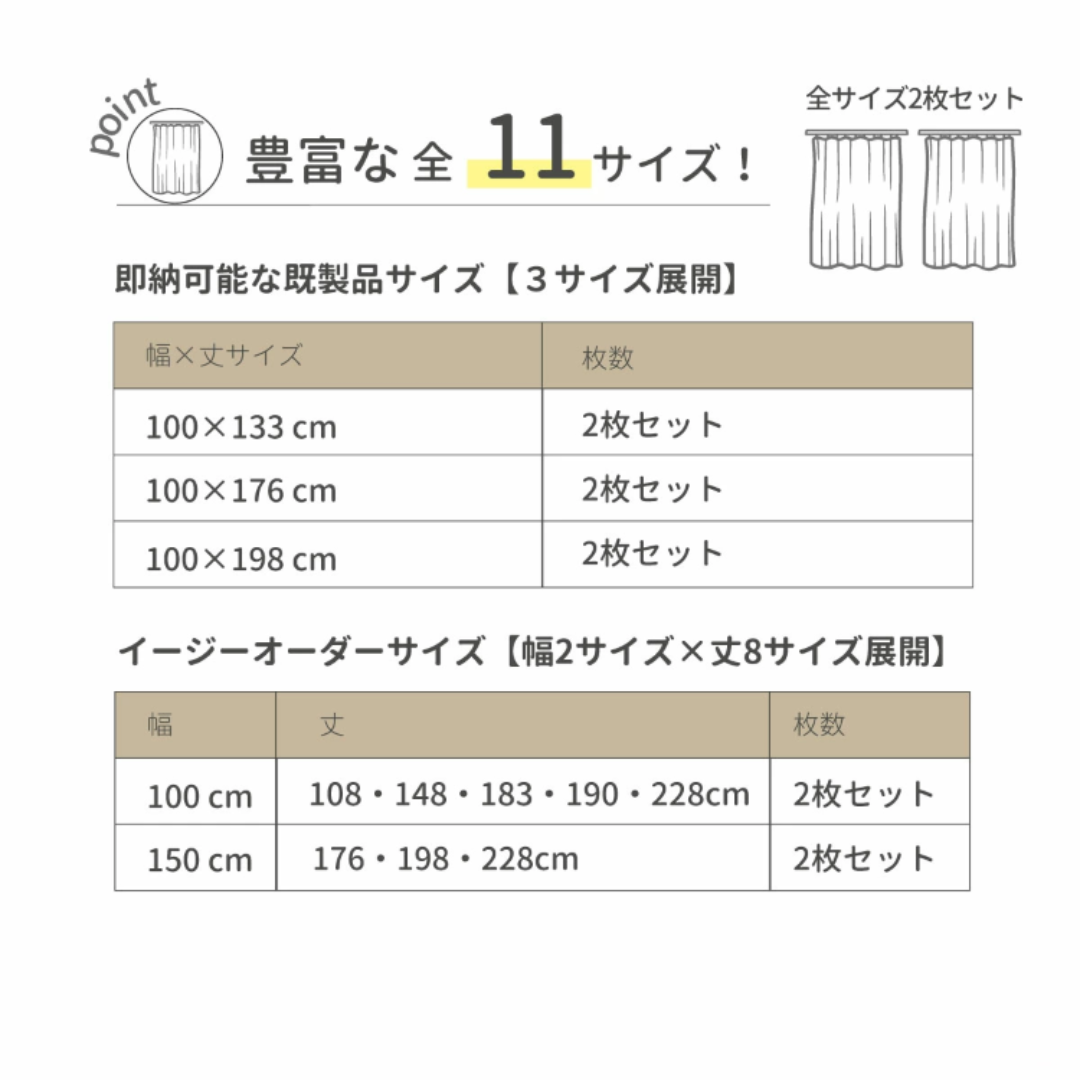 • 一般窗紗設計比遮光窗簾短2cm, 如你打算購買100 x 135cm 的遮光窗簾, 100 x 133cm 便是正確的窗紗尺寸了