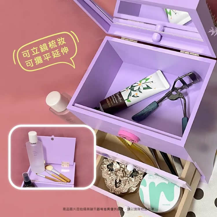 附鏡子分格收納化妝品, 隨時扮靚靚~