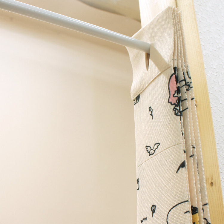 • 安裝簡單只要預先準備好一支伸縮長通,將布簾穿上去就用得,用剪刀沿垂直和水平線切割,輕鬆調整長度