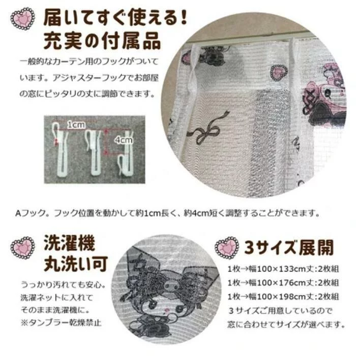 Sanrio My Melody & Kuromi 2級遮光窗簾 + 窗紗 (一套4塊) #JP-BD22-SB-617-S/SB-618-S