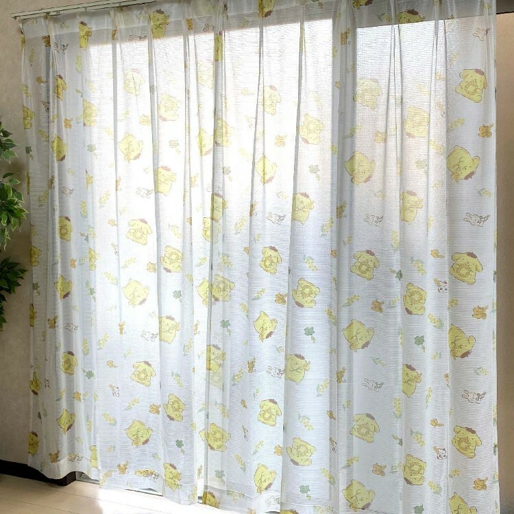 22048-PN Sanrio 布甸狗2-3級遮光窗簾 + 窗紗 - 小黃花 (一套4塊) #JP-BD22-SB-608-S/SB-609-S