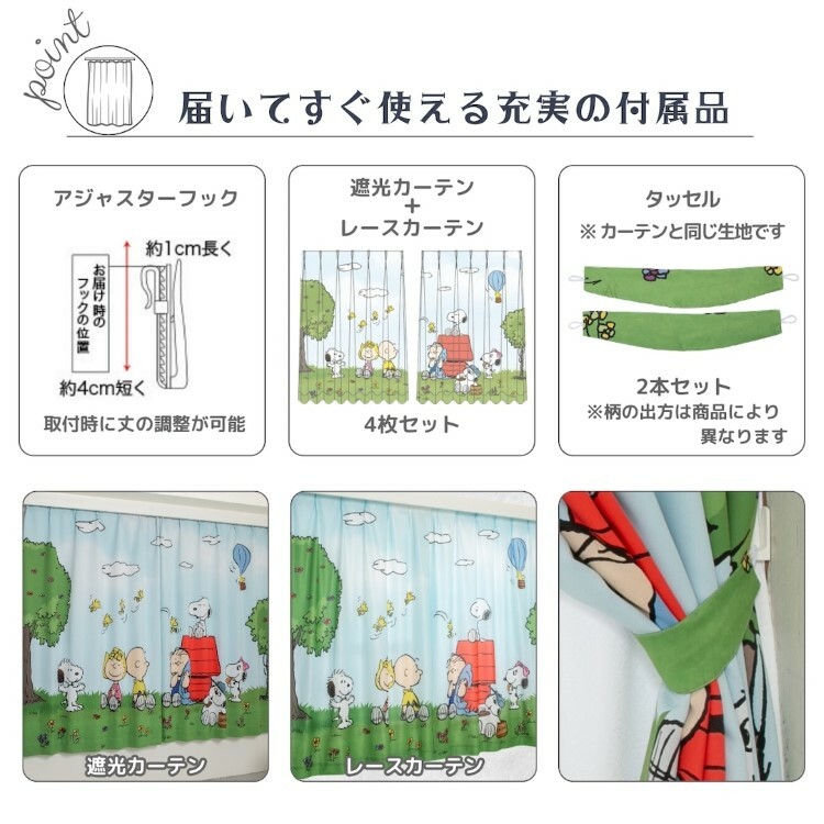 • 整張窗簾呈現出可愛的史努比圖畫,成為家中的焦點; 明亮的色彩增添了空間的活力和趣味性; 它不僅實用,還能增添家居的藝術氛圍, 特別適合兒童房間或喜愛卡通的家庭,增強主題感!!!