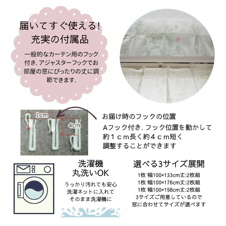 • 每套包左右窗紗2塊, 100 x 133cm 的意思是每塊濶100cm x 高133cm (100cm 闊是計裝了掛勾後的尺寸)