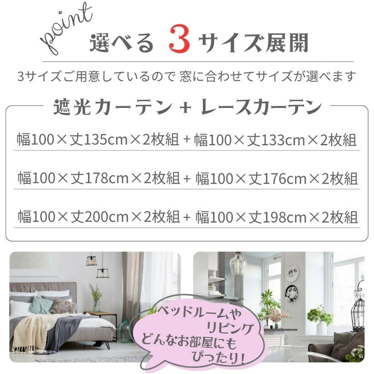 • 一般窗紗設計比遮光窗簾短2cm, 如你打算購買100 x 178cm 的遮光窗簾, 100 x 176cm 便是正確窗紗尺寸
