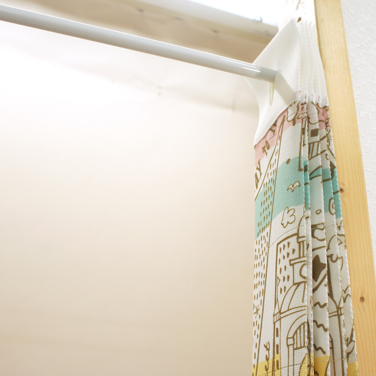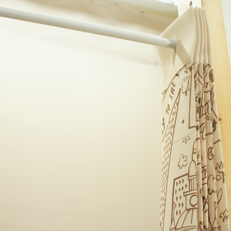 • 安裝簡單只要預先準備好一支伸縮長通,將布簾穿上去就用得,用剪刀沿垂直和水平線切割,輕鬆調整長度