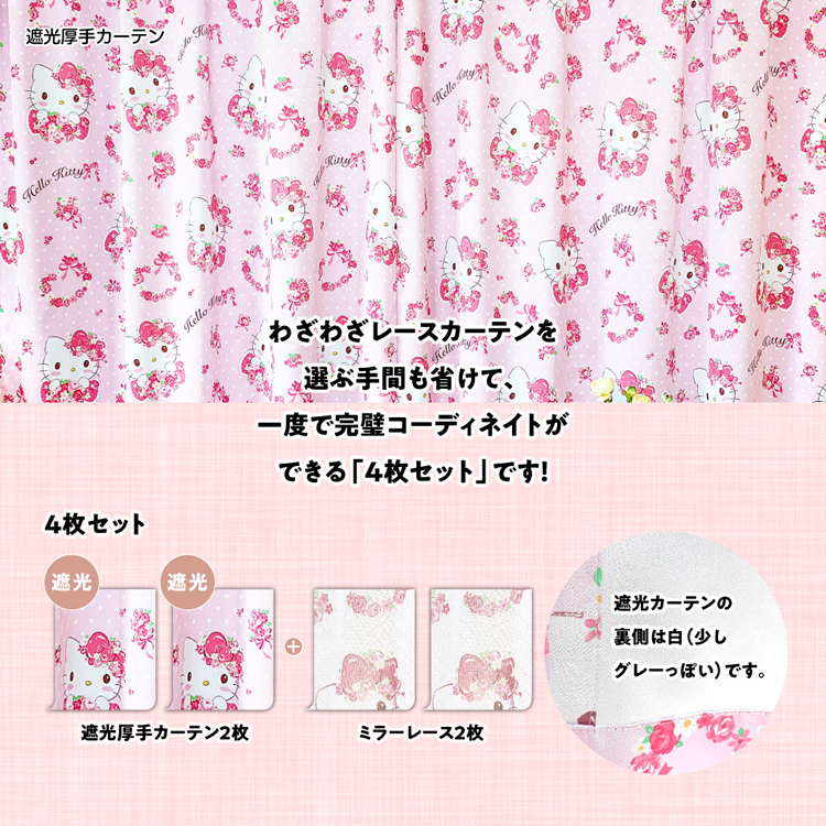 Sanrio Hello Kitty 3級遮光窗簾 + 窗紗 (一套4塊) #JP-SD21-KT-2600 - 花圖案